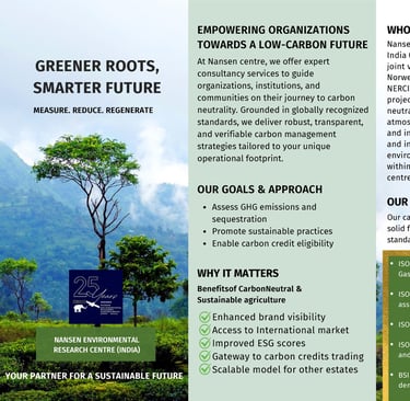 At Nansen center, we offer expert consultancy services to guide organizations, institutions, and communities on their journey to carbon neutrality. Grounded in globally recognized standards, we deliver robust, transparent, and verifiable carbon management strategies tailored to your unique operational footprint.